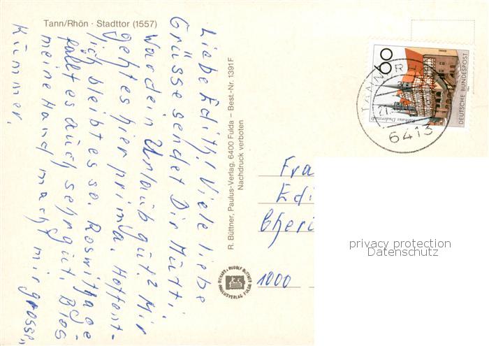 73840407 Tann Rhoen Stadttor postalisch nicht gelaufen Erhaltung siehe scans [FriedD77] KatCode: 11110006631023