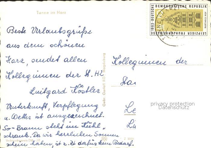 72010577 alte Postkarte Tanne Harz postalisch gelaufen KatCode: 11110015085325