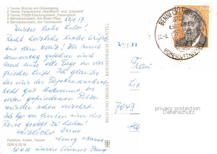 72919633 alte Postkarte Tanne Harz Bruecke Ferienheime Benneckenstein Roter Platz Teichdamm postalisch gelaufen Erhaltung siehe scans [FriedD77] KatCode: 11110015085325