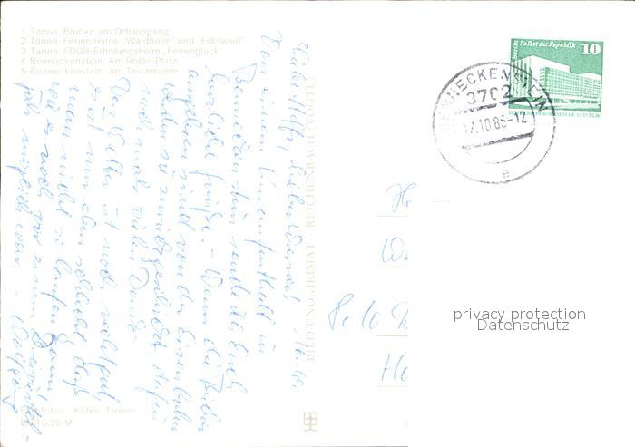 72353765 alte Postkarte Tanne Harz Bruecke Ortsteingang Ferienheime FDGB Erholungsheime Benneckenstein Roter Platz Teichdamm postalisch gelaufen Erhaltung siehe scans KatCode: 11110015085325