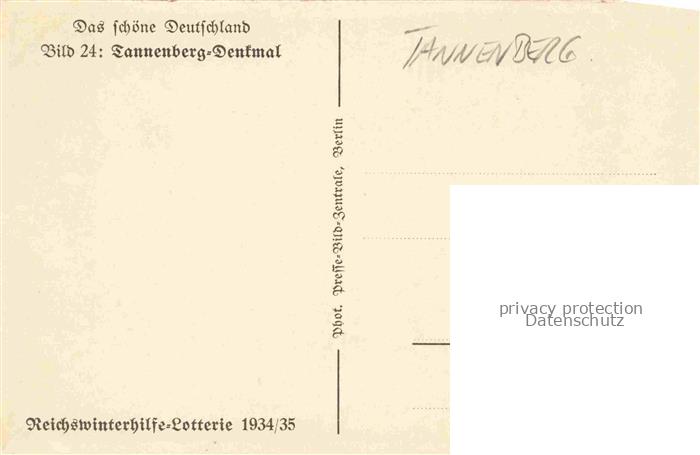 74017062 Tannenberg Denkmal Hohenstein Ostpreussen PL Serie Das schoene Deutschland Bild 24 Tannenberg-Denkmal Reichswinterhilfe-Lotterie 1934/35 postalisch nicht gelaufen Erhaltung siehe scans [FriedD77] KatCode: 11410