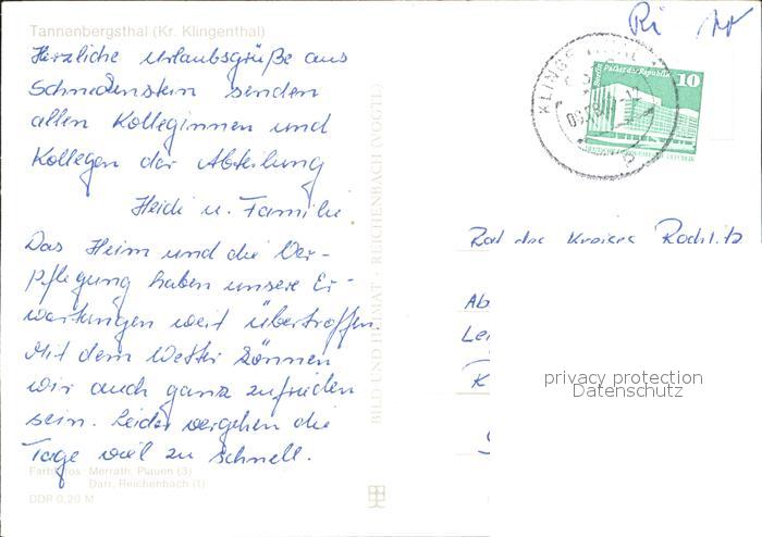 72333014 alte Postkarte Tannenbergsthal Vogtland postalisch gelaufen Erhaltung siehe scans KatCode: 11110014178650