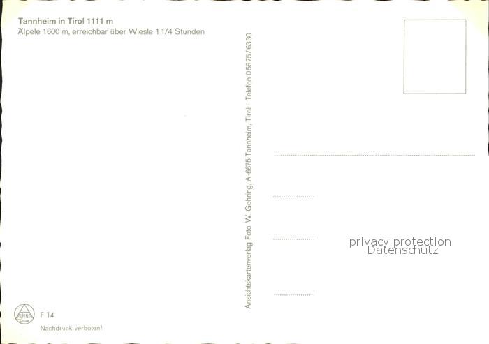 72243992 Tannheim Tirol aelple postalisch nicht gelaufen Erhaltung siehe scans KatCode: 11390331070832