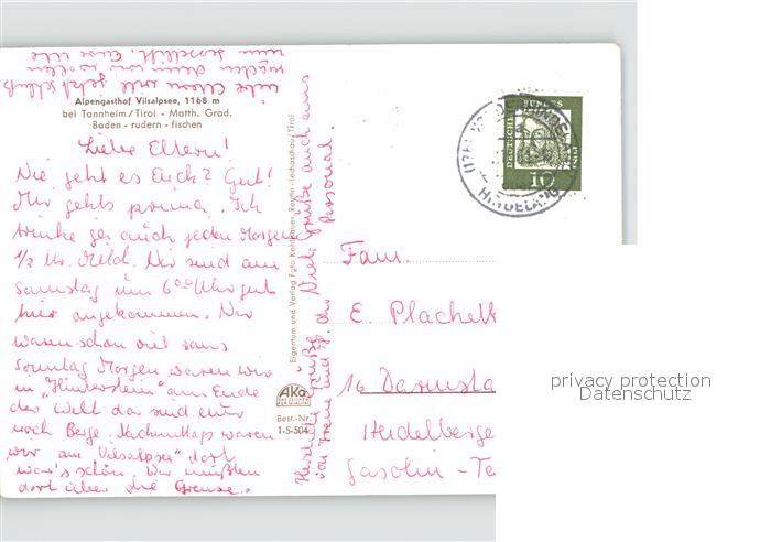 11932957 alte Postkarte Tannheim Tirol Alpengasthof Vilsalpsee und Traualpsee postalisch gelaufen Erhaltung siehe scans KatCode: 11390331070832