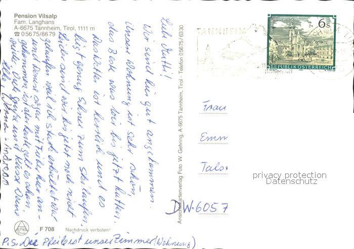 11923292 alte Postkarte Tannheim Tirol Apartpension Vilsalp Wildfuetterung Pferdeschlitten postalisch gelaufen Erhaltung siehe scans KatCode: 11390331070832
