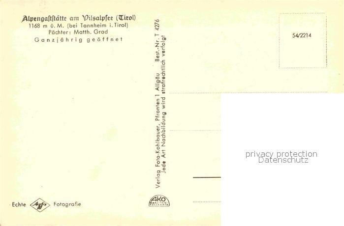 72814202 Tannheim Tirol Blick von der Terrasse der Alpengaststaette postalisch nicht gelaufen Erhaltung siehe scans [AndreD76] KatCode: 11390331070832