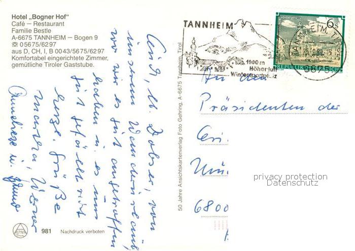 73236907 alte Postkarte Tannheim Tirol Bogner Hof Hotel Cafe Restaurant Vilsalpsee postalisch gelaufen Erhaltung siehe scans [KathaD81] KatCode: 11390331070832