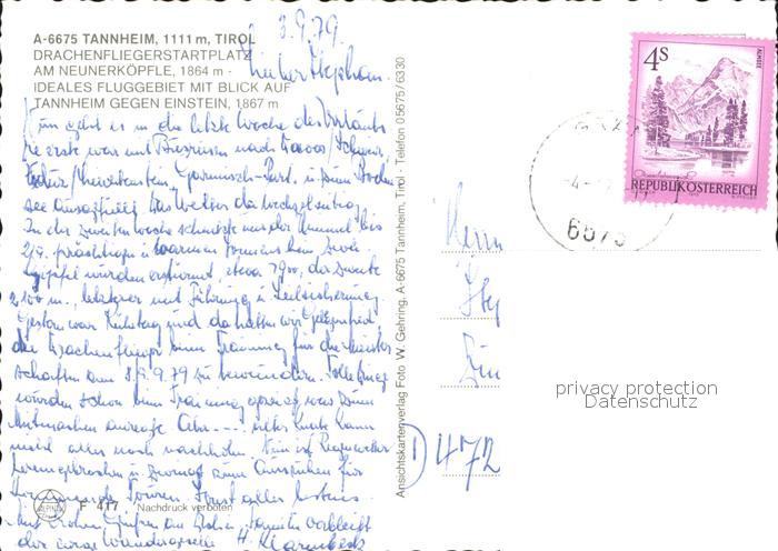 71908983 alte Postkarte Tannheim Tirol Drachenfliegerstartplatz postalisch gelaufen Erhaltung siehe scans KatCode: 11390331070832