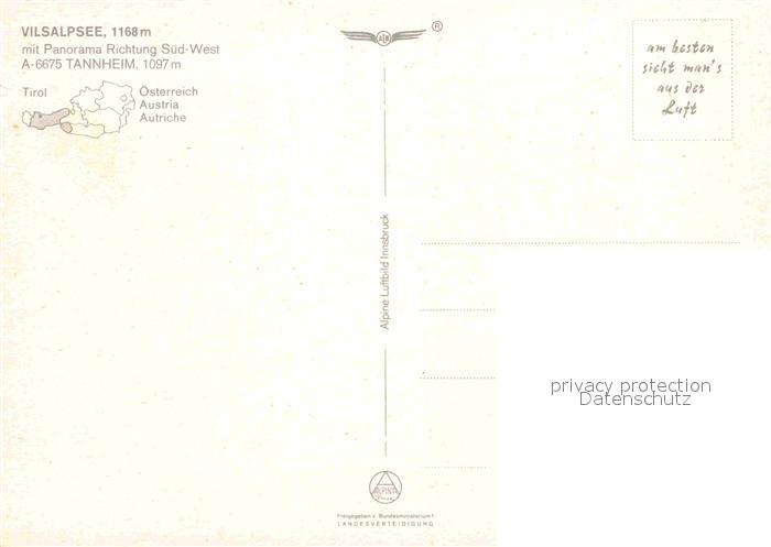 72772609 Tannheim Tirol Fliegeraufnahme Vilsalpsee postalisch nicht gelaufen Erhaltung siehe scans [AndreD76] KatCode: 11390331070832