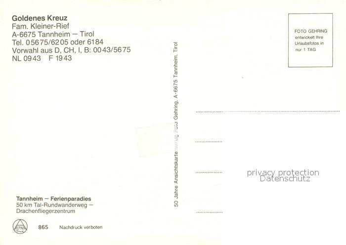73519378 Tannheim Tirol Gasthof Pension Goldenes Kreuz postalisch nicht gelaufen Erhaltung siehe scans [FriedD77] KatCode: 11390331070832