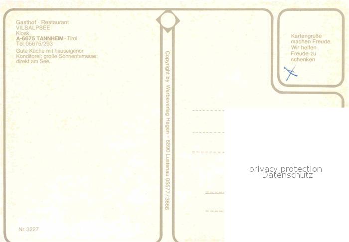 72683897 Tannheim Tirol Gasthof Restaurant Vilsalpsee Terrasse postalisch nicht gelaufen Erhaltung siehe scans [WerneD78] KatCode: 11390331070832