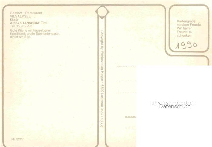 72898912 Tannheim Tirol Gasthof Vilsalpsee Restaurant postalisch nicht gelaufen Erhaltung siehe scans [FriedD77] KatCode: 11390331070832