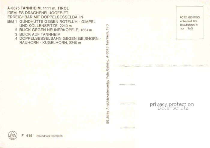 72674683 Tannheim Tirol Gundhuette Neunerkoepfle Drachenflieger Panorama Sessellift postalisch nicht gelaufen Erhaltung siehe scans [WerneD78] KatCode: 11390331070832