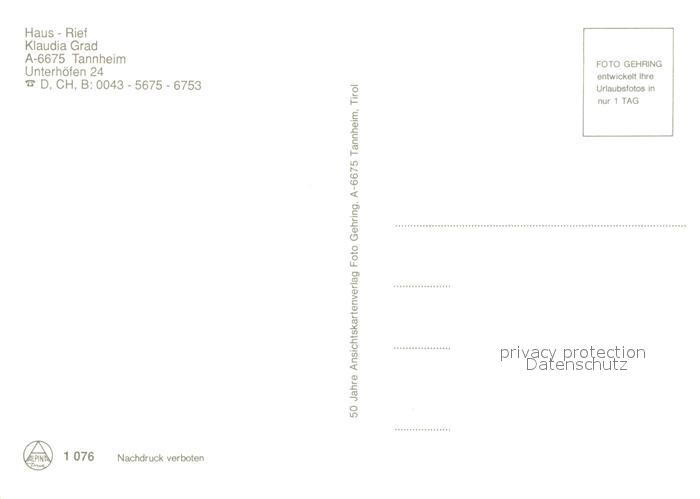 12975311 Tannheim Tirol Haus Rief postalisch nicht gelaufen Erhaltung siehe scans [NatalD47] KatCode: 11390331070832