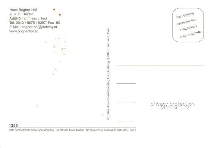 13187523 Tannheim Tirol Hotel Bogner Hof postalisch nicht gelaufen Erhaltung siehe scans [NatalD47] KatCode: 11390331070832