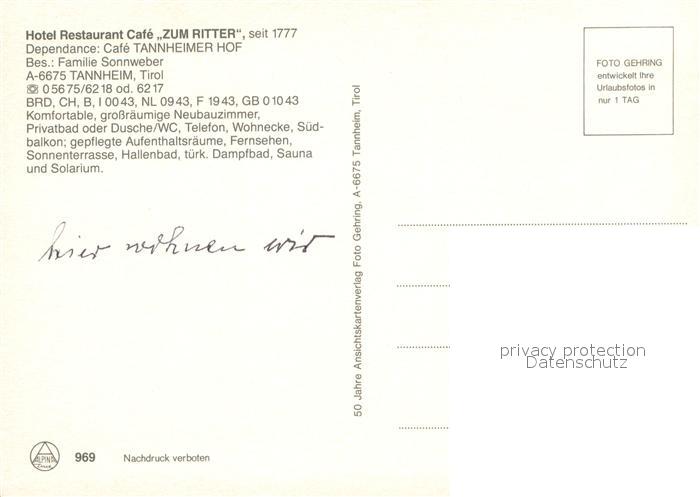 73636604 Tannheim Tirol Hotel Restaurant Cafe Zum Ritter Cafe Tannheimer Hof postalisch nicht gelaufen Erhaltung siehe scans [WerneD78] KatCode: 11390331070832