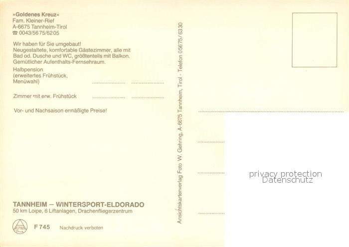 73613058 Tannheim Tirol Hotel Restaurant Goldenes Kreuz im Winter postalisch nicht gelaufen Erhaltung siehe scans [FriedD77] KatCode: 11390331070832