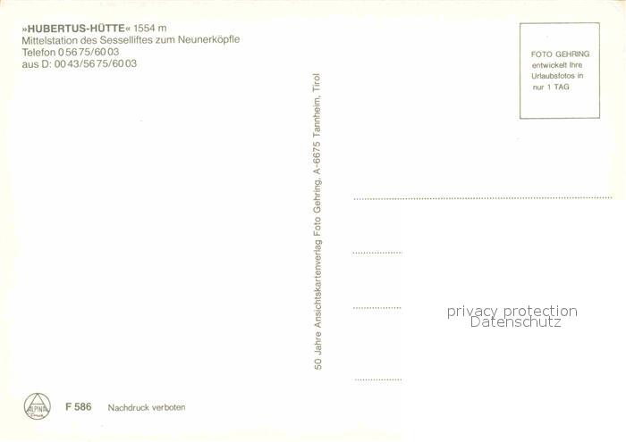 72674681 Tannheim Tirol Hubertus Huette Gaststube Sessellift Drachenflieger postalisch nicht gelaufen Erhaltung siehe scans [WerneD78] KatCode: 11390331070832