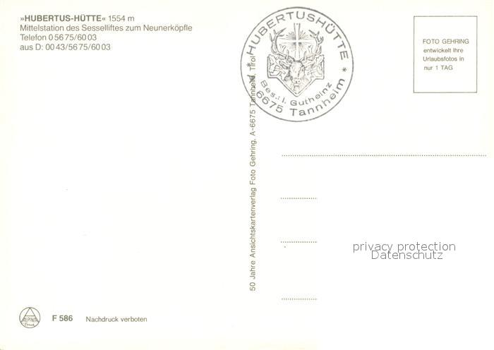 73224249 Tannheim Tirol Hubertus Huette Sessellift Neunerkoepfle Drachenfliegen Landschaftspanorama Tannheimer Tal postalisch nicht gelaufen Erhaltung siehe scans [FriedD77] KatCode: 11390331070832