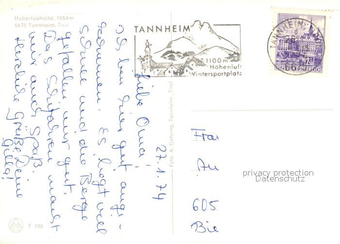 73246740 alte Postkarte Tannheim Tirol Hubertushuette Wintersportplatz Alpen postalisch gelaufen Erhaltung siehe scans [FriedD77] KatCode: 11390331070832