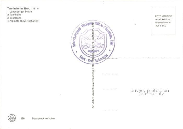 72257010 Tannheim Tirol Landsberger Huette Alpenpanorama Vilsalpsee Alphuette postalisch nicht gelaufen Erhaltung siehe scans KatCode: 11390331070832