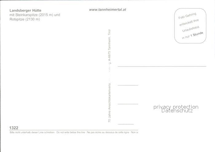72455508 Tannheim Tirol Landsberger Huette Berghaus mit Steinkarspitze und Rotspitze Allgaeuer Alpen Murmeltier postalisch nicht gelaufen Erhaltung siehe scans KatCode: 11390331070832