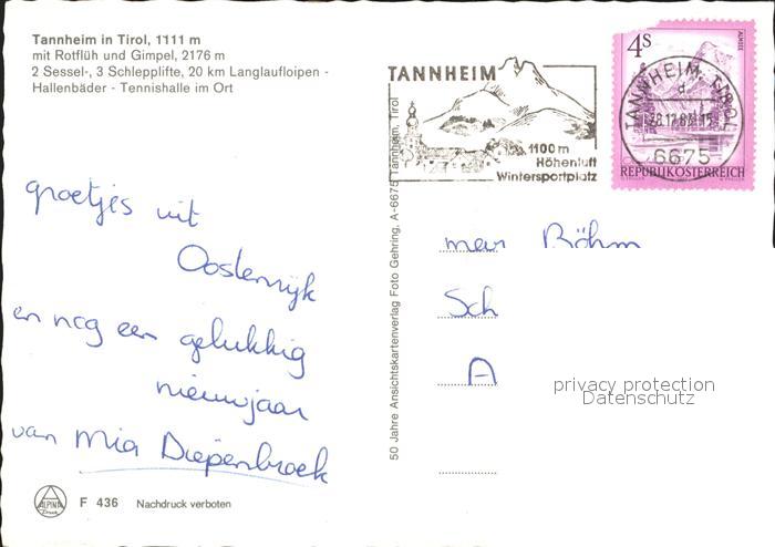 72092961 alte Postkarte Tannheim Tirol mit Rotflueh und Gimpel postalisch gelaufen Erhaltung siehe scans KatCode: 11390331070832