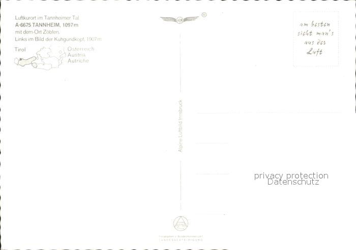 72049668 Tannheim Tirol mit Zoeblen und Kuhgundkopf Fliegeraufnahme postalisch nicht gelaufen Erhaltung siehe scans KatCode: 11390331070832