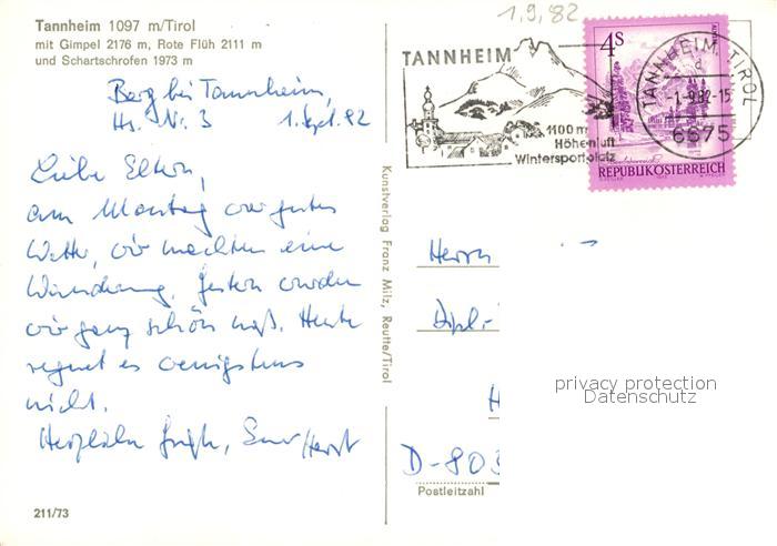 73147479 alte Postkarte Tannheim Tirol Panorama mit Gimpel Rote Flueh und Schartschrofen Tannheimer Berge postalisch gelaufen Erhaltung siehe scans [FriedD77] KatCode: 11390331070832
