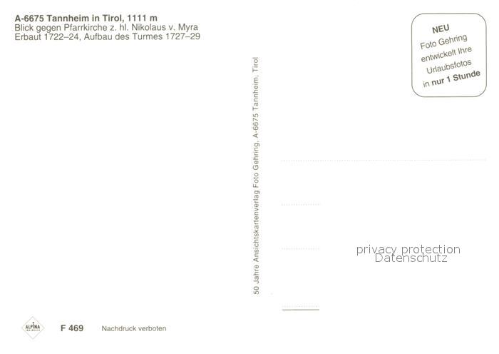 73272413 Tannheim Tirol Pfarrkirche Heiliger Nikolaus von Myra postalisch nicht gelaufen Erhaltung siehe scans [KathaD81] KatCode: 11390331070832