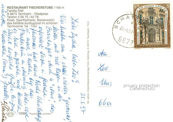 73686191 alte Postkarte Tannheim Tirol Restaurant Fischerstube am Vilsalpsee postalisch gelaufen Erhaltung siehe scans [WerneD78] KatCode: 11390331070832