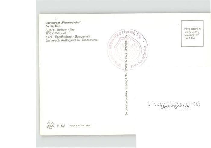 71497399 Tannheim Tirol Restaurant Fischerstube Terrasse Vilsalpsee Paddelboot postalisch nicht gelaufen Erhaltung siehe scans KatCode: 11390331070832