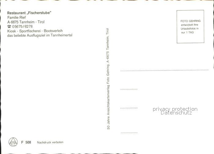 72591501 Tannheim Tirol Restaurant Fischerstube postalisch nicht gelaufen Erhaltung siehe scans [WerneD78] KatCode: 11390331070832