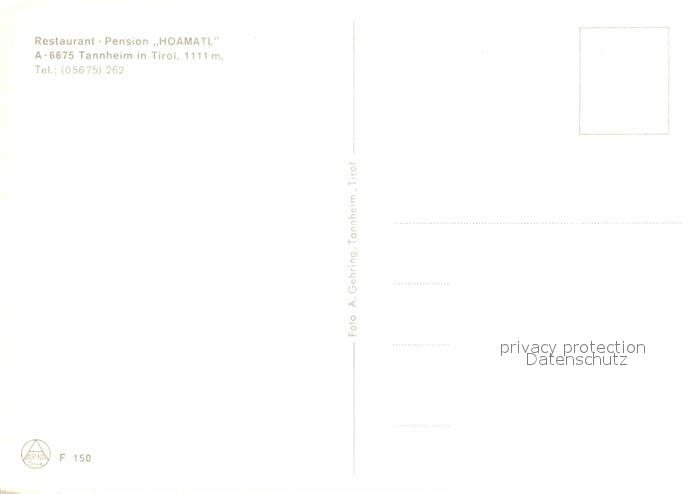 12880921 Tannheim Tirol Restaurant Pension Hoamatl postalisch nicht gelaufen Erhaltung siehe scans [KathaD81] KatCode: 11390331070832