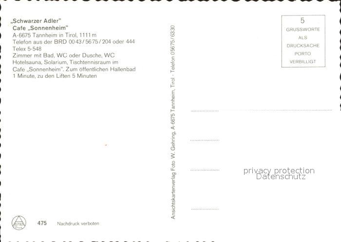72049655 Tannheim Tirol Schwarzer Adler Cafe Sonnenheim postalisch nicht gelaufen Erhaltung siehe scans KatCode: 11390331070832