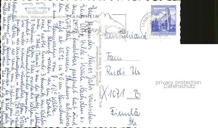 72485013 alte Postkarte Tannheim Tirol Sessellift postalisch gelaufen Erhaltung siehe scans KatCode: 11390331070832