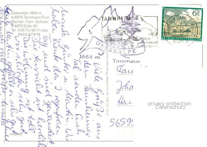72943000 alte Postkarte Tannheim Tirol Usseralpe postalisch gelaufen Erhaltung siehe scans [KathaD81] KatCode: 11390331070832
