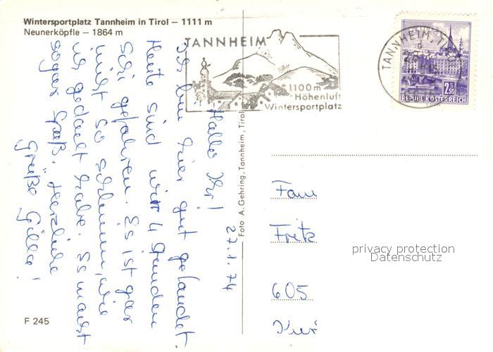 73246749 alte Postkarte Tannheim Tirol Winterpanorama gegen Neunerkoepfle Allgaeuer Alpen postalisch gelaufen Erhaltung siehe scans [FriedD77] KatCode: 11390331070832