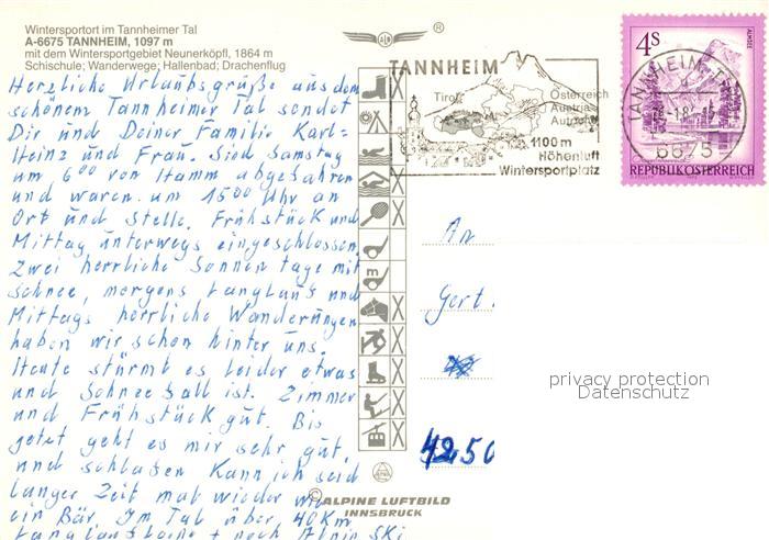 13235299 alte Postkarte Tannheim Tirol Wintersportort Tannheimer Tal Neuner Koepfl Fliegeraufnahme Tiefschneefahren postalisch gelaufen Erhaltung siehe scans [FriedD77] KatCode: 11390331070832