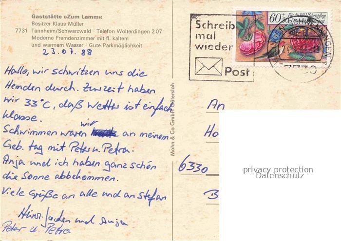 74087446 alte Postkarte Tannheim Villingen-Schwenningen BW Gaststaette Zum Lamm postalisch gelaufen Erhaltung siehe scans [WerneD78] KatCode: 11110008326074