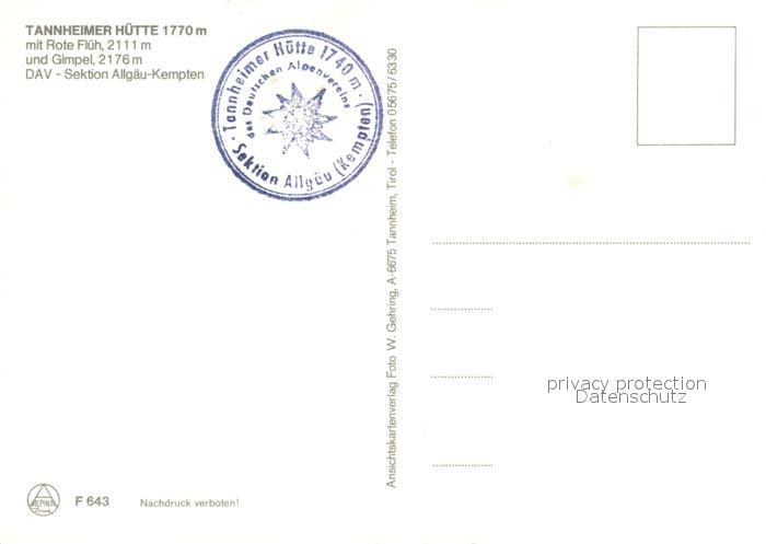 73281873 Tannheimer Huette mit Rote Flueh postalisch nicht gelaufen Erhaltung siehe scans [WerneD78] KatCode: 11390331070824