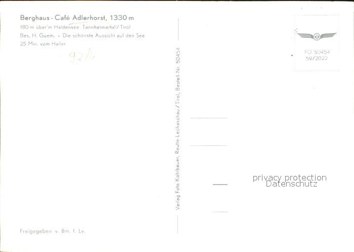 72489825 Tannheimertal Berghaus Cafe Adlerhorst Fliegeraufnahme postalisch nicht gelaufen Erhaltung siehe scans KatCode: 11390