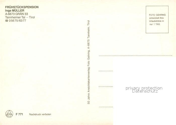 73076107 Tannheimertal Haus Mueller Graen See postalisch nicht gelaufen Erhaltung siehe scans [KathaD81] KatCode: 11390