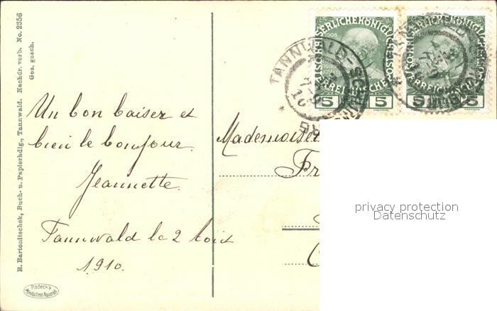 11923691 old postcard Tannwald Tschechien postalisch gelaufen Erhaltung siehe scans KatCode: 11520