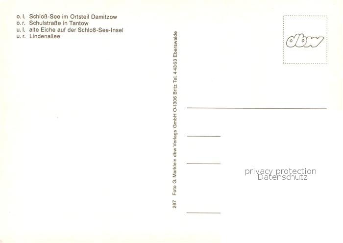 73664811 Tantow Schloss See in Damitzow Schulstrasse Alte Eiche Lindenallee postalisch nicht gelaufen Erhaltung siehe scans [WerneD78] KatCode: 11110012073565