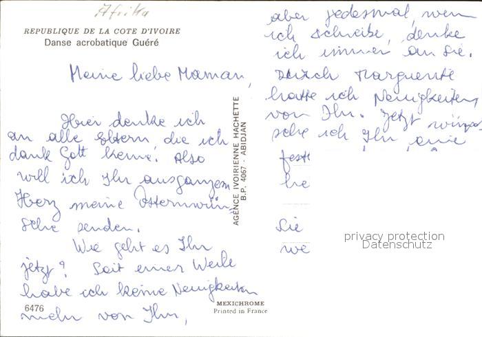 Tanz Taenzer Danse acrobatique Guere postalisch nicht gelaufen Erhaltung siehe scans