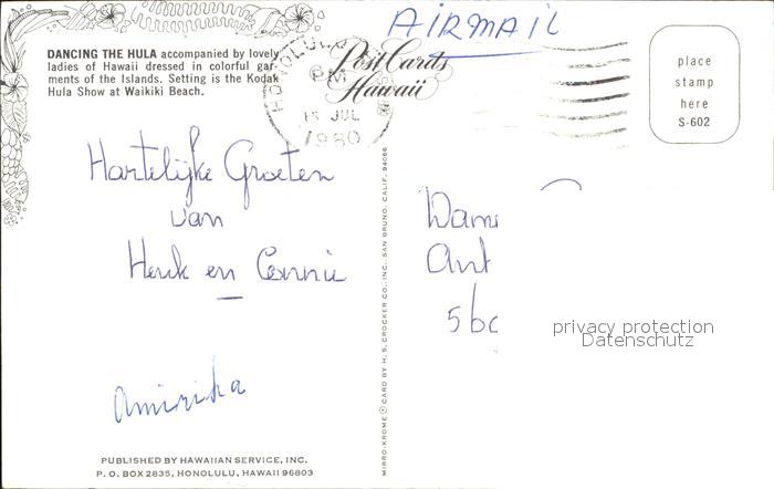 alte Postkarte Tanz Taenzer Hula Hawaii Kodak Hula Show Waikiki Beach postalisch gelaufen Erhaltung siehe scans