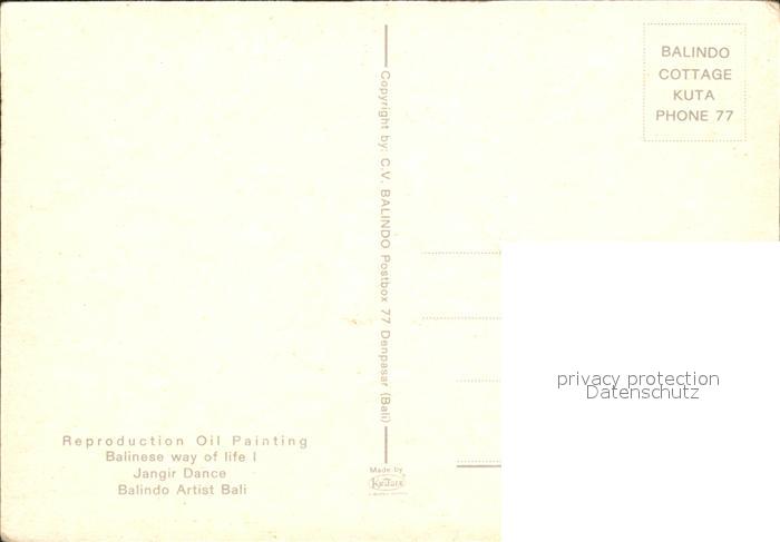 Tanz Taenzer Jangir Dance Balinese way of Life postalisch nicht gelaufen Erhaltung siehe scans