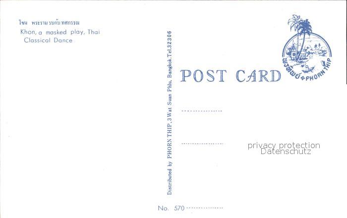 Tanz Taenzer Khon Masked Play Thai Classical Dance postalisch nicht gelaufen Erhaltung siehe scans [PaolaD17]