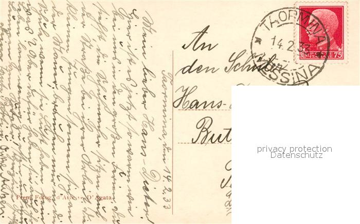 13477086 Taormina Sizilien postalisch gelaufen Erhaltung siehe scans [LiesaD40] old postcard Lies Katcode 11240